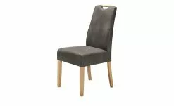 Ein bequemes Sitzmöbel für Essecke oder Speisezimmer ist dieser Stuhl. Für genügend Stabilität sorgt das Stuhlgestell aus Massivholz. Das Holzdekor der Beine sorgt außerdem für einen natürlichen Kontrast zum Bezugsstoff von Sitz- und Rückenfläche. Dieser ist aus strapazierfähigem Polyester. Besonders schön ist die Leder-Optik des Stoffes, die den Stuhl optisch bereichert. Damit Sie auch bei Mittag oder Abendessen gut sitzen, ist der Stuhl mit einer Gurtfederung ausgestattet.
