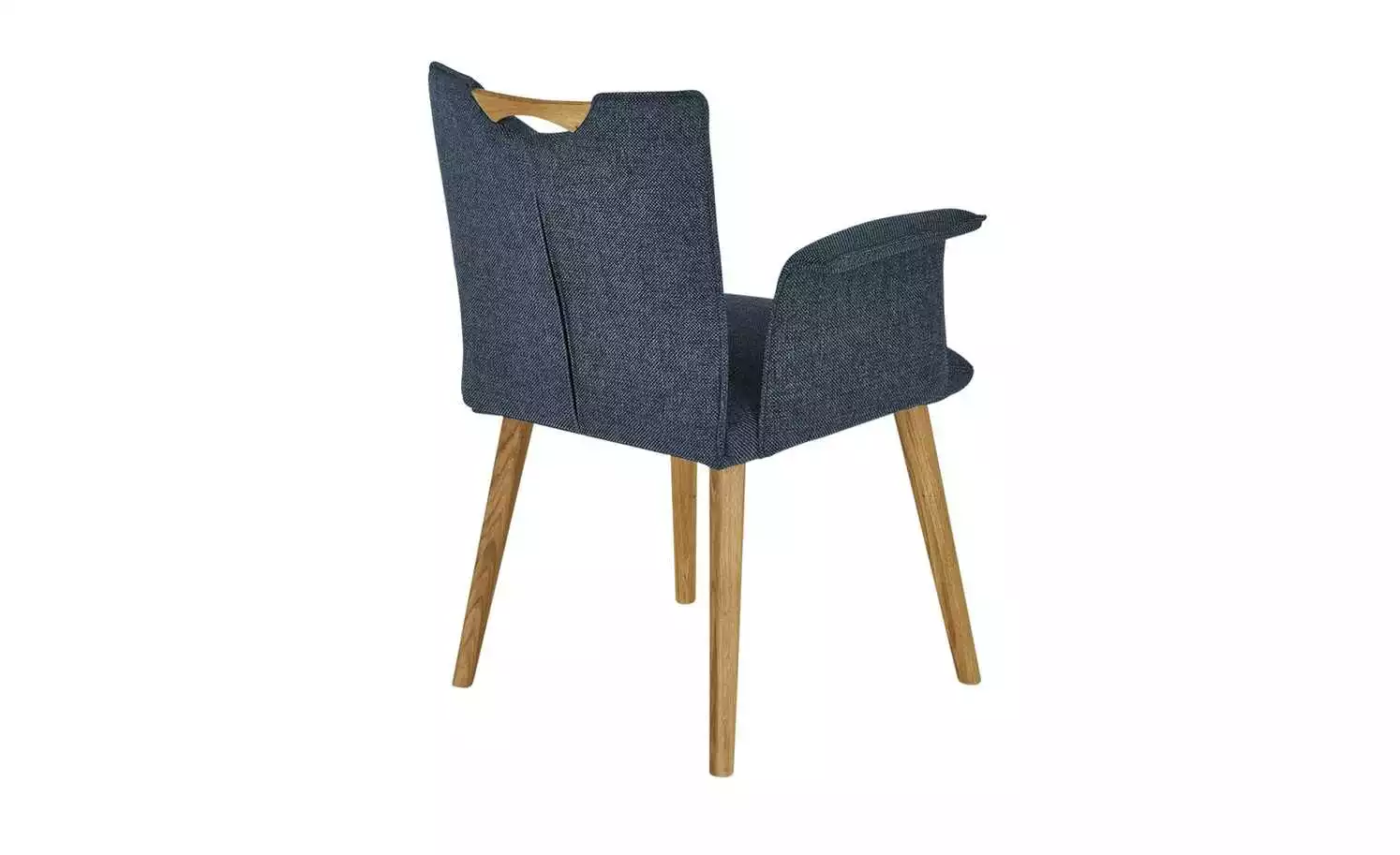 Der Stuhl Scandio von Wohnwert setzt auf exklusives Design. Es hat eine dezente skandinavische Note, die dem Stuhl auch seinen Namen verleiht. Rücken, Sitz und die geschwungenen Armlehnen sind mit einem Webstoff bezogen. Er hat eine griffige, strukturierte Oberfläche und ist meliert. Dank der dicken Polsterung unterhalb des Stoffes sitzen Sie bequem. Am oberen Ende der Lehne befindet sich ein praktischer Griff. Er ist – passend zum Gestell – aus massiver Wildeiche gefertigt und ebenfalls geölt.