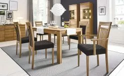 Aus hochwertiger Kernbuche ist der Stuhl Noa gefertigt worden. Das verleiht ihm Stabilität und ein ansprechendes Äußeres mit natürlichem Charme. Das Holz ist mit einem Wachseffektlack versehen worden. Das schützt es einerseits und andererseits bringt es die Maserung der Kernbuche besonders gut zur Geltung. Sitzfläche und Teile des Rückens sind mit einem melierten Webstoff bezogen. Unter dem Bezug befindet sich eine Polsterung aus Schaumstoff. Diese bietet Ihnen viel Sitzkomfort.